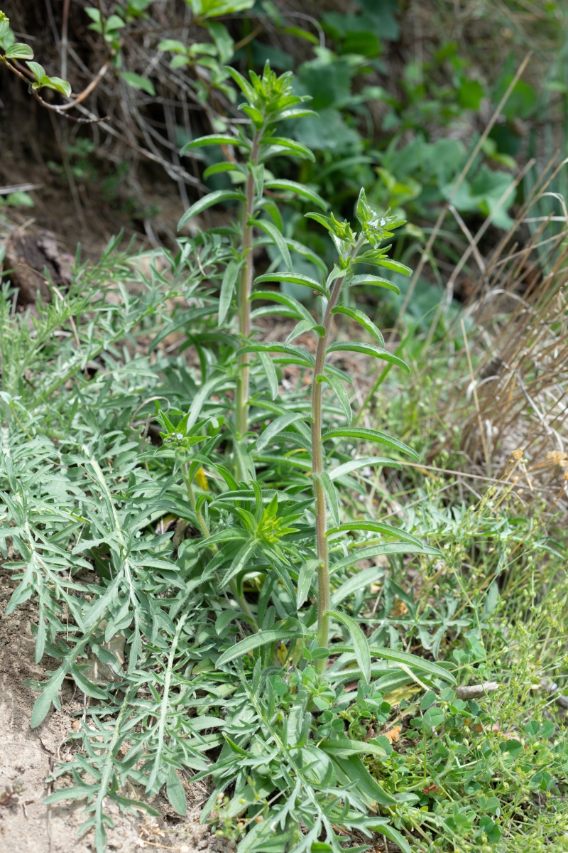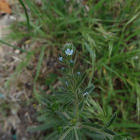 avec le Myosotis des champs dont la tige est rameuse dès la base